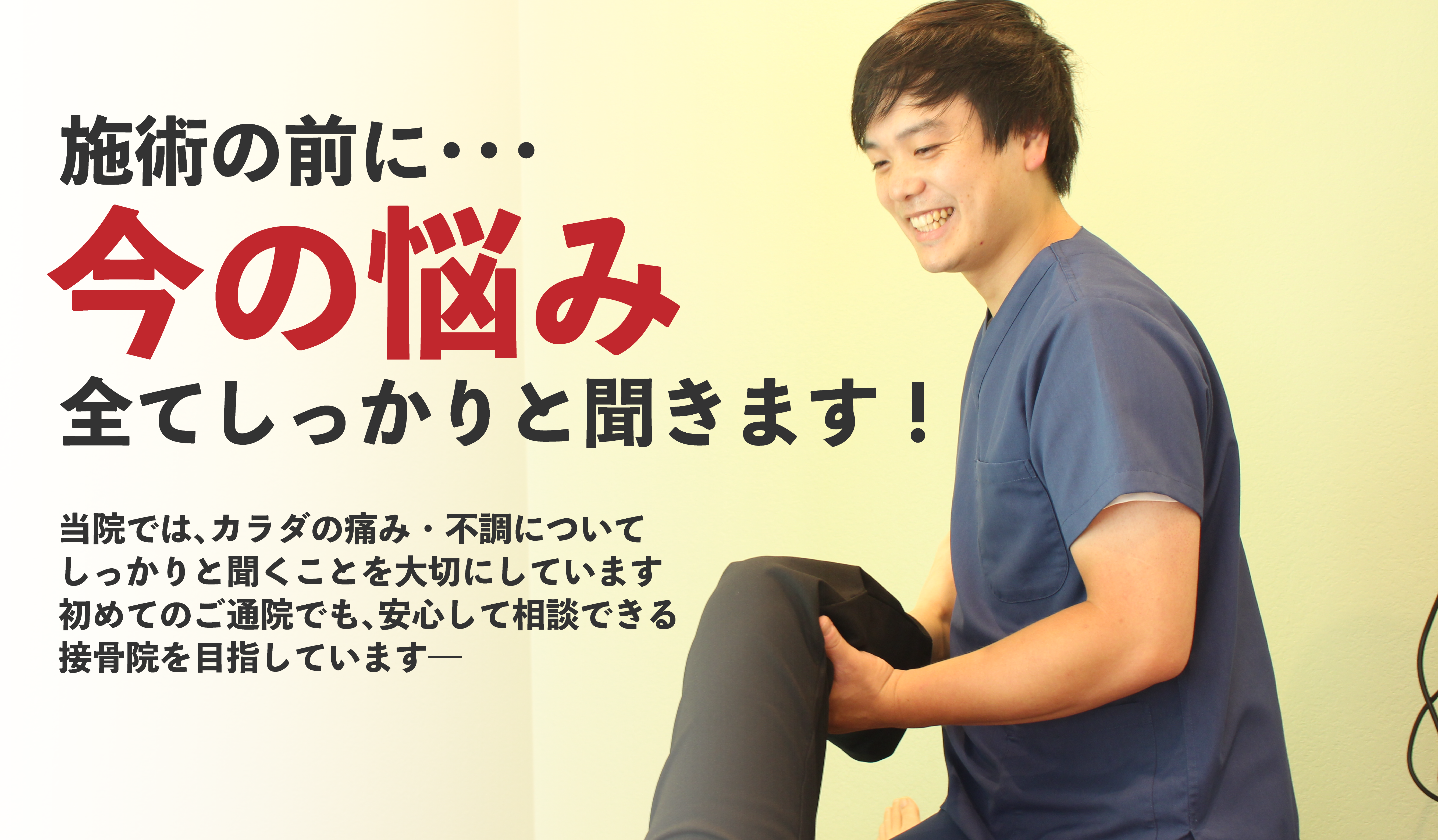 当院は、「要望に合わせた施術で根本的な改善を1日でも早く」ということを目標に施術しております。